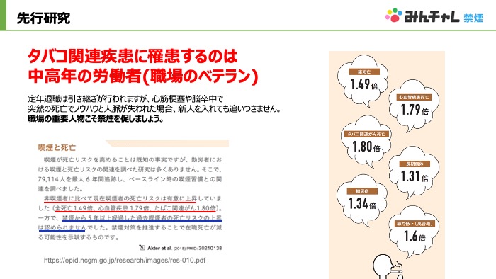 最悪の場合、後任者に引き継ぎをする暇もなく逝去された場合、会社としては大きな損失です。 - トップや経営層が喫煙することのデメリットは、上司が喫煙していると部下が禁煙しないこと。